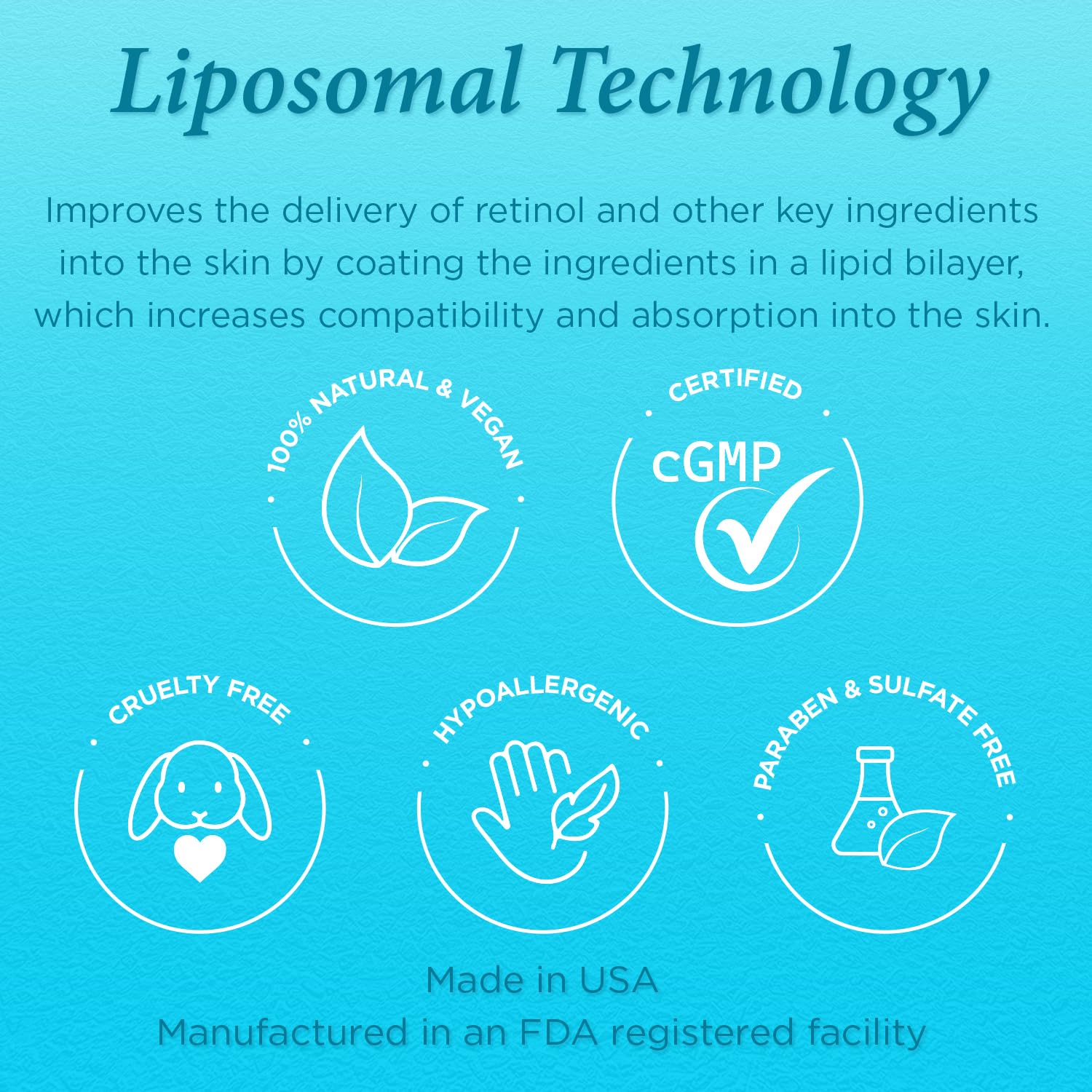 Ebanel Liposomal 2.5% Retinol Serum for Face with Hyaluronic Acid, Peptide, Vitamin C, Pore Minimizer Skin Tightening, Anti Aging Serum, Minimizes Wrinkles, Fine Lines, Age Spots