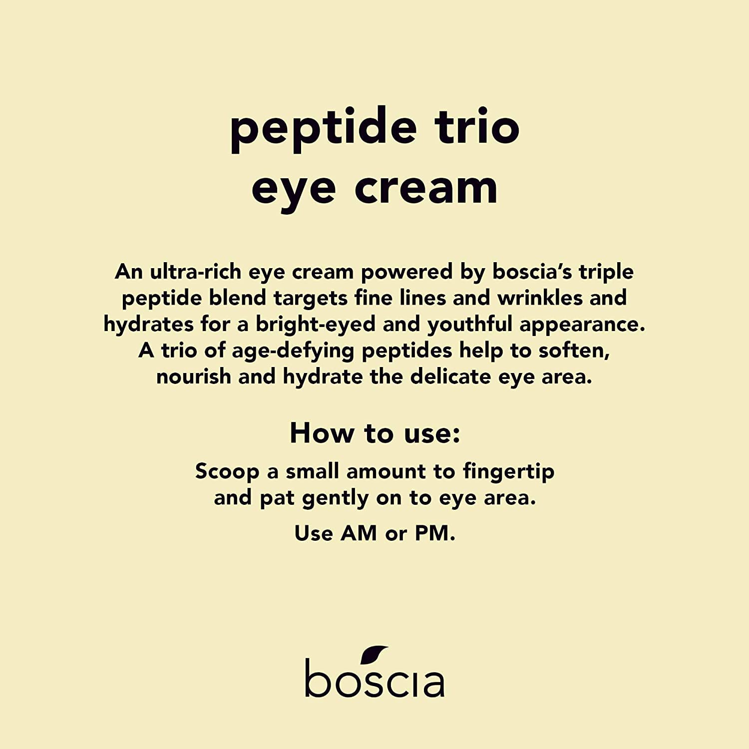 boscia Peptide Trio Eye Cream - Vegan, Cruelty-Free, Natural Skin Care - Age-Defying Eye Cream with Peptide Blend and Organic Botanical Oils - With Hyaluronic Acid - For All Skin Types - 0.51 Fl Oz