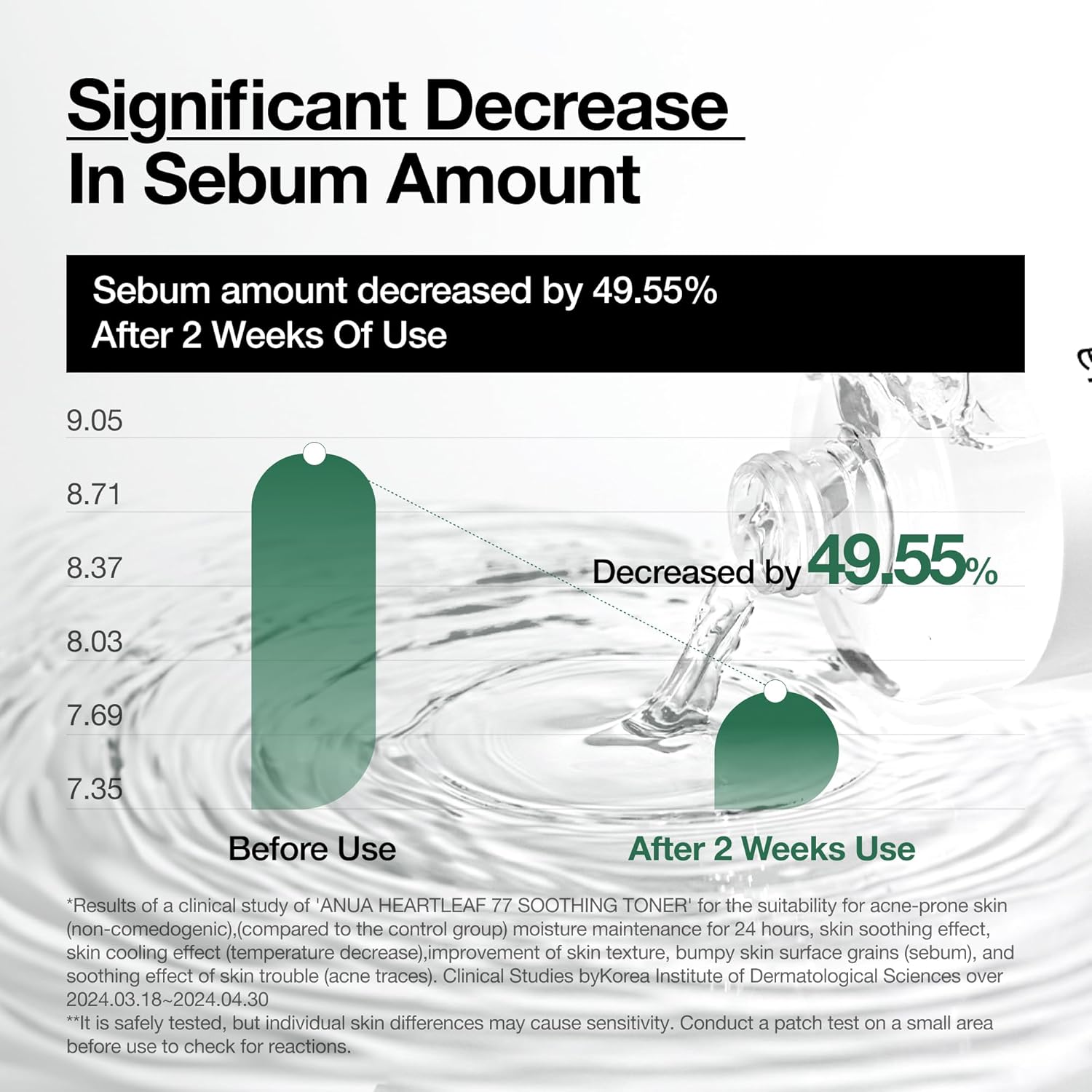 - SOOTHING FACE TONER : Infused with the highest concentration of Heartleaf Extract, known best for it's calming effects, this toner is designed to soothe, tone, hydrate, and balance the skin's pH level.