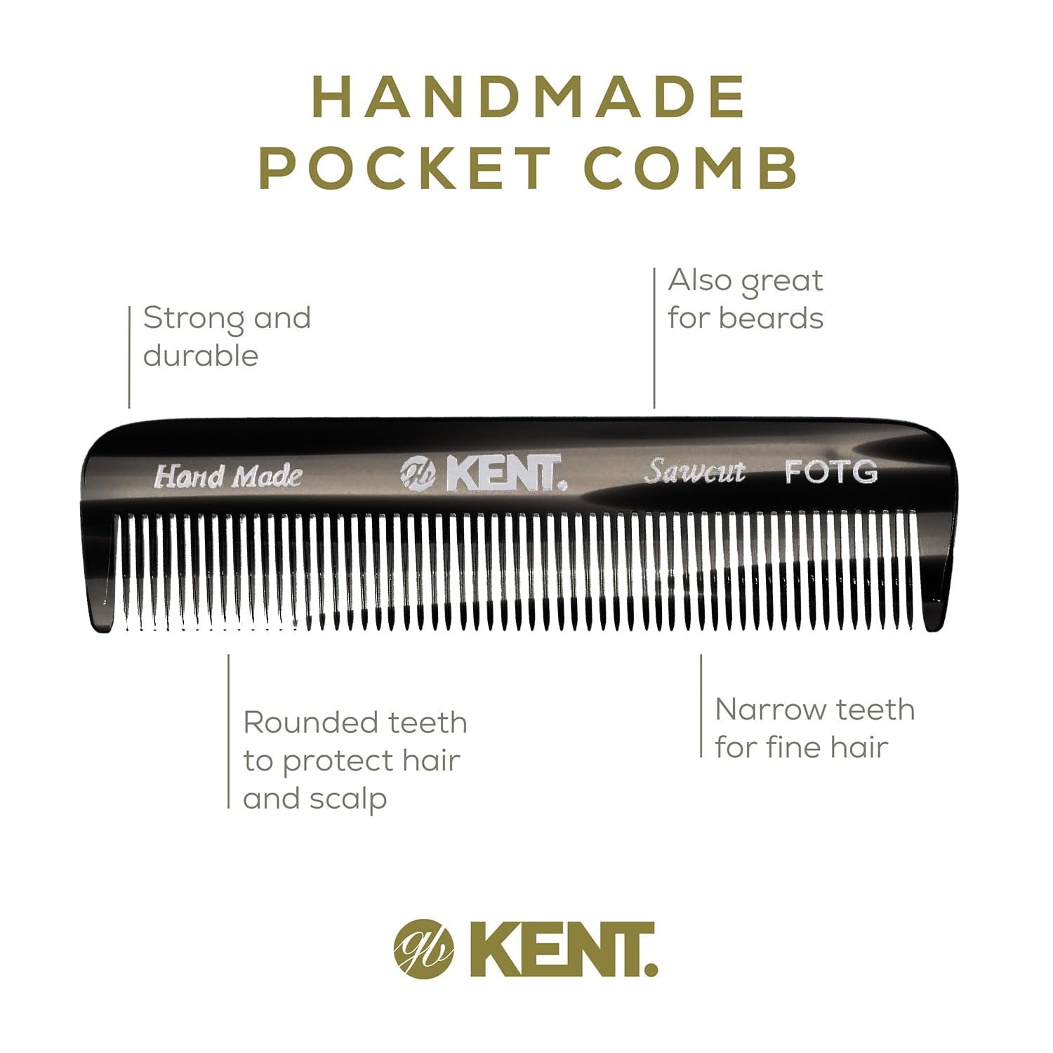 Kent FOT Black Graphite Fine Tooth Beard Comb - 4.5" Handmade Pocket Travel Comb for Men - Styling Combs for Fine or Thinning Hair, Mustache and Beard Care and Hair Care Kent