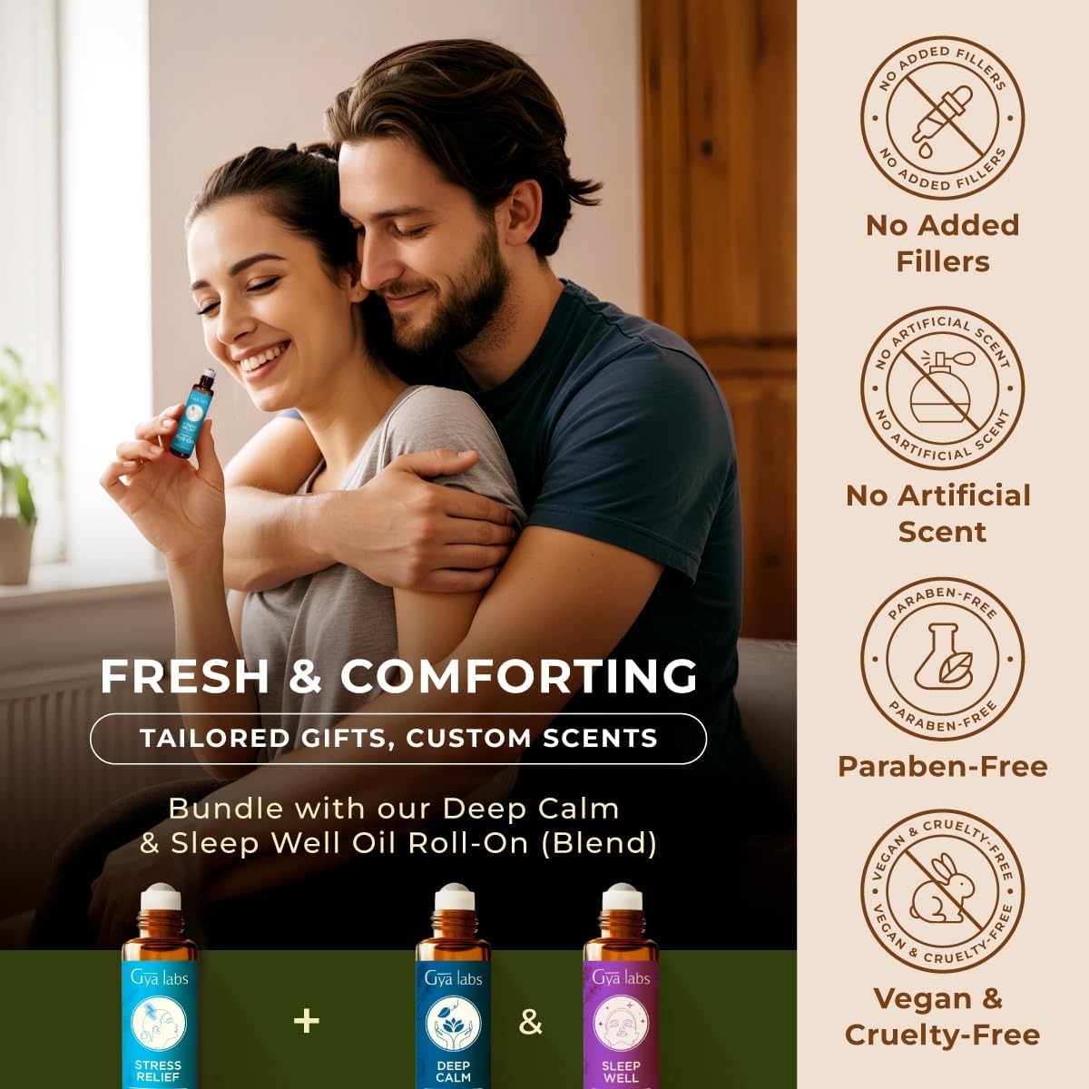 - Trusted Quality: Our stress relief roll-on is a cruelty-free, non-GMO product that is both alcohol-free and free of any artificial additives. However, we strongly suggest patch testing our calm essential oil roll on 24 hours before use.
