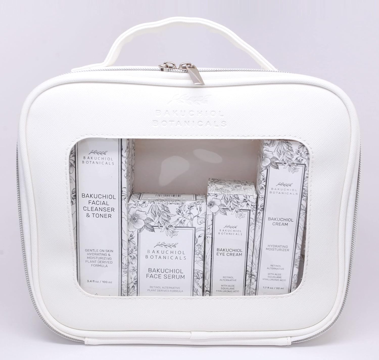 Bakuchol Botanicals Gift Set with Travel Case, Includes Face Serum, Toner & Cleanser All-in-One, Eye Cream, Moisturizer