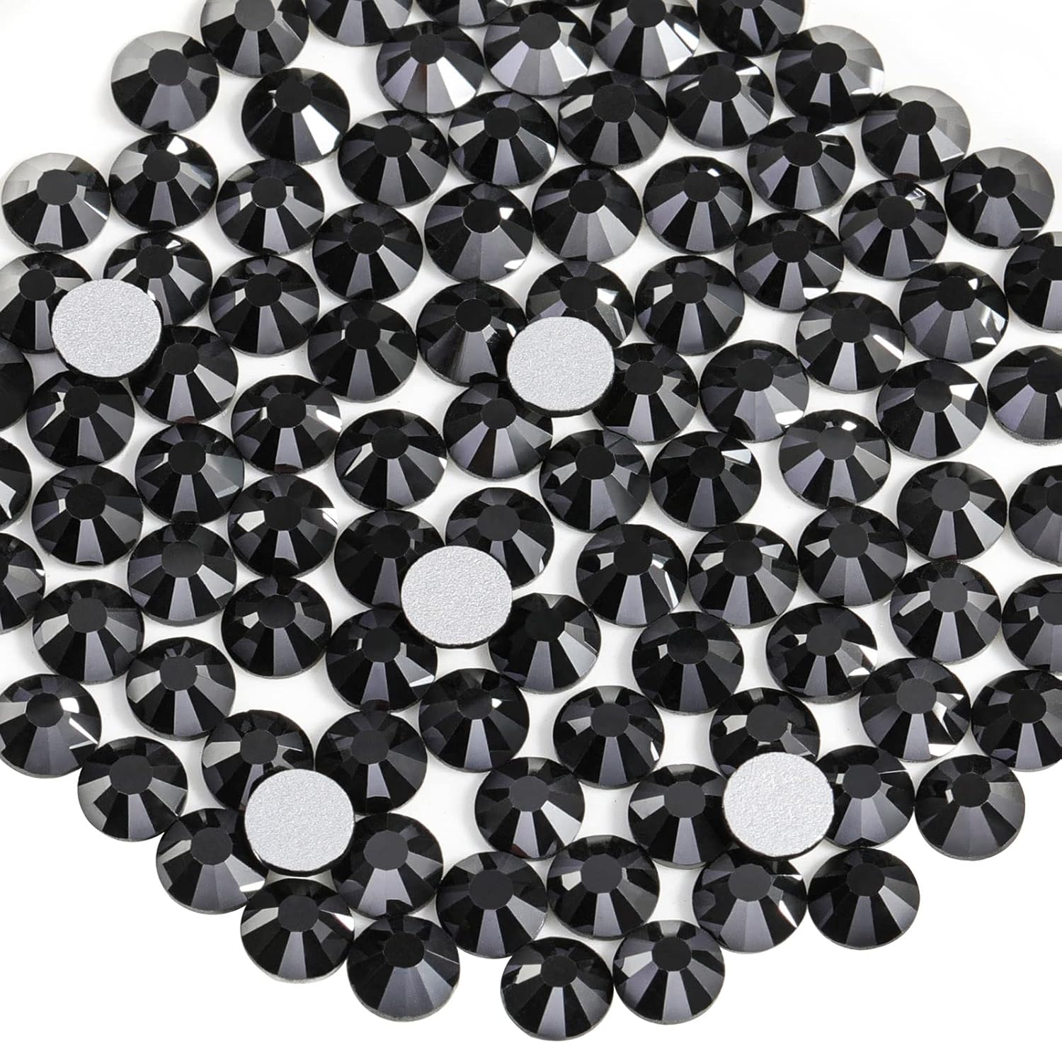 Beadsland 1440pcs Flat Back Crystal Rhinestones Round Gems for Nail Art and Craft Glue Fix, Jet Hematite,SS16,3.8-4.0mm
