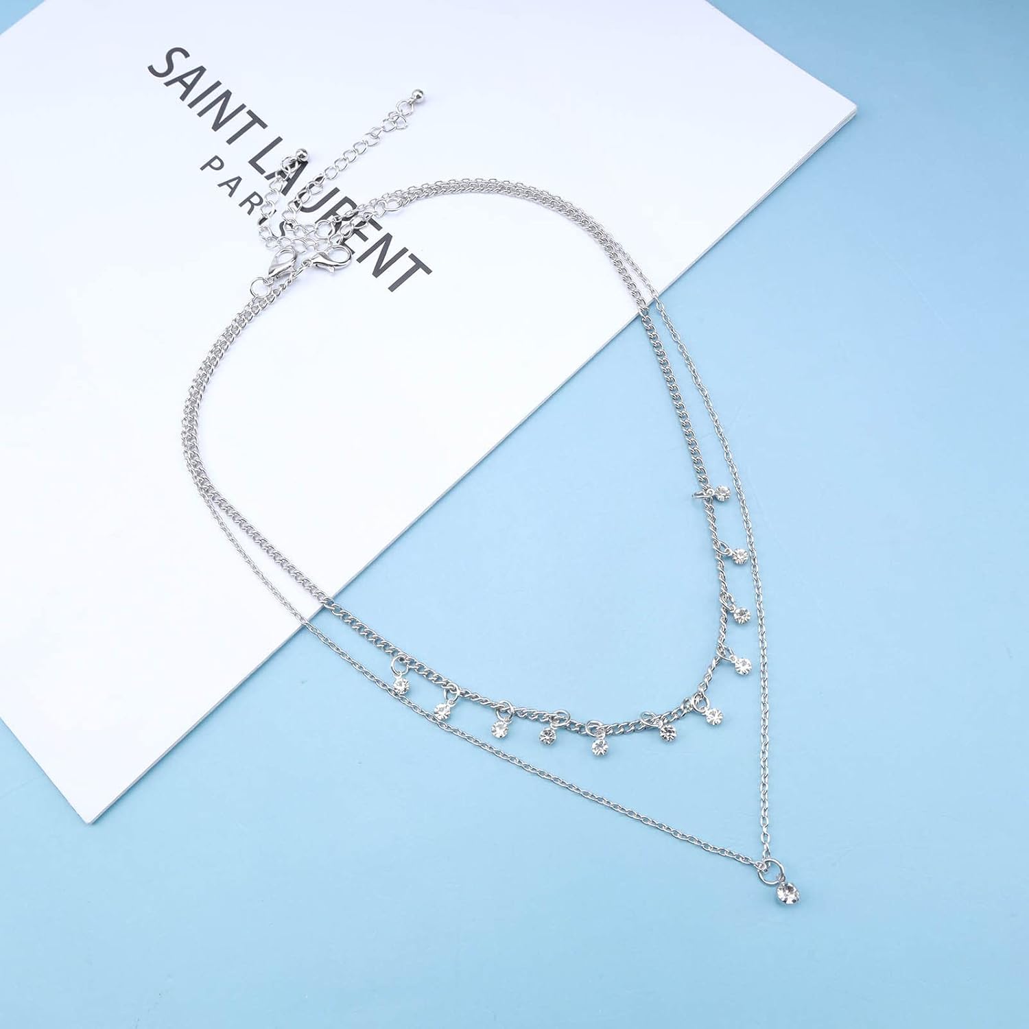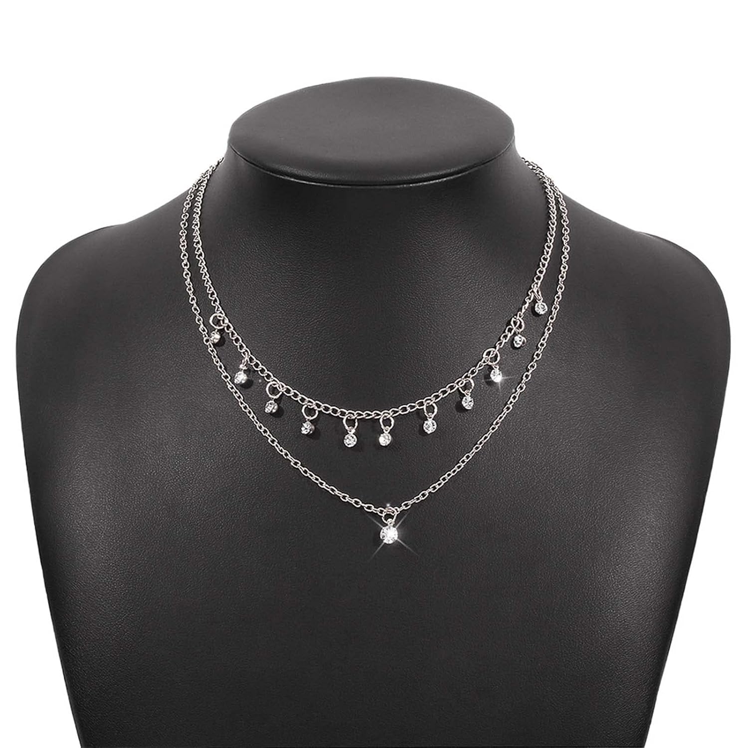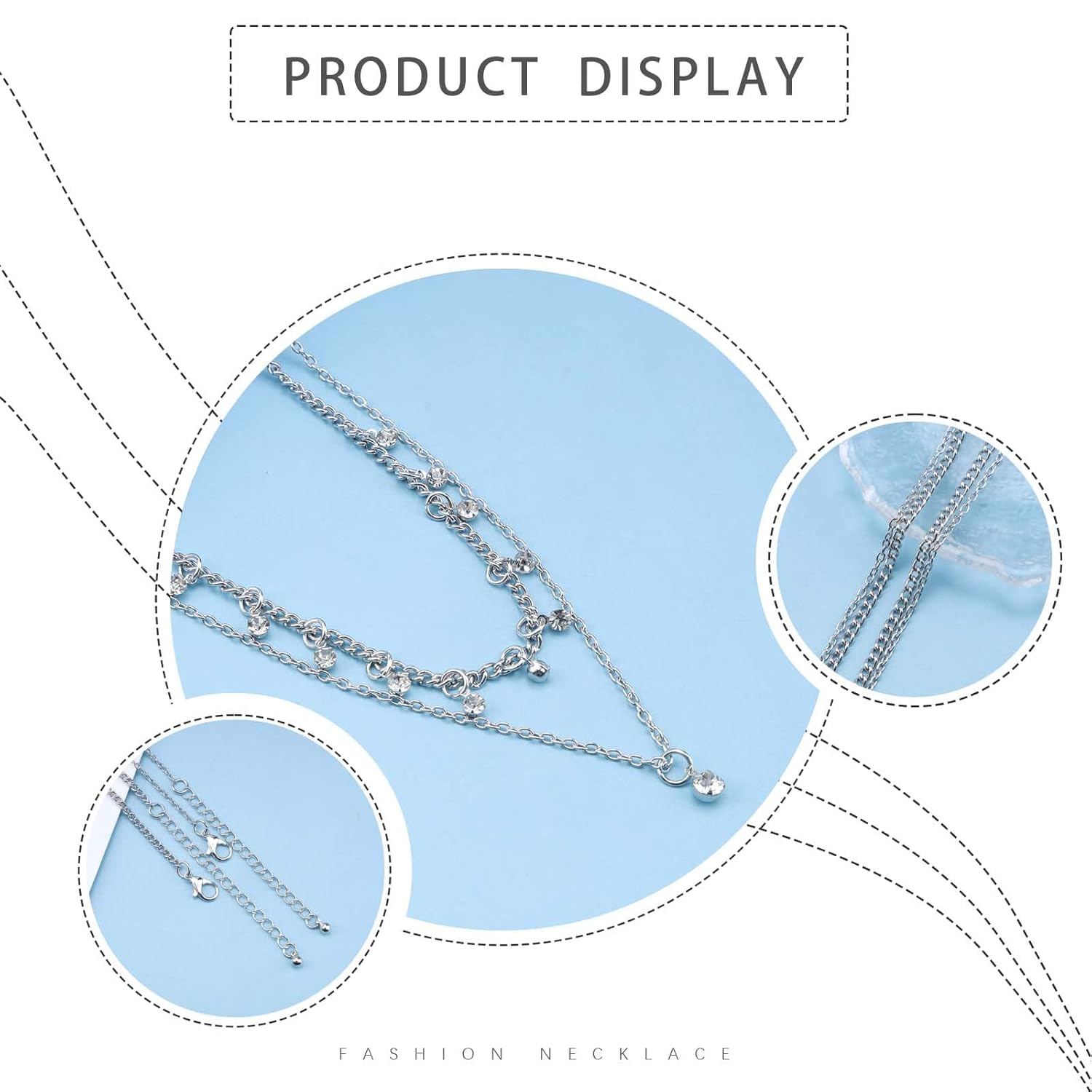 - Layering rhinestone necklace chain made of high quality alloy and rhinestone,make the surface of the necklace brighter,hypoallergenic,wonโt irritate your skin.