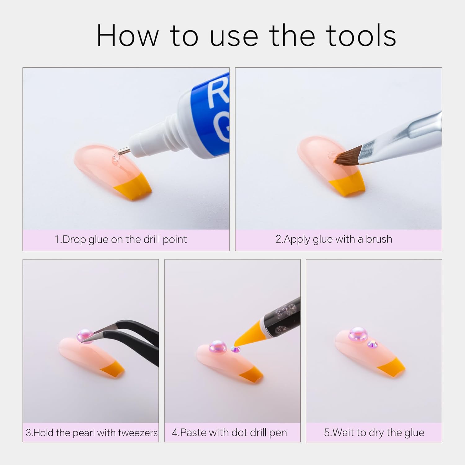 - Useful tools - These pearls and rhinestones have a flat back, which is excellent for easy placement.and you can pick up any large or small pearls and rhinestones with the crayons we bring along. And use the brush to smooth out the Gel, these tools will work very well