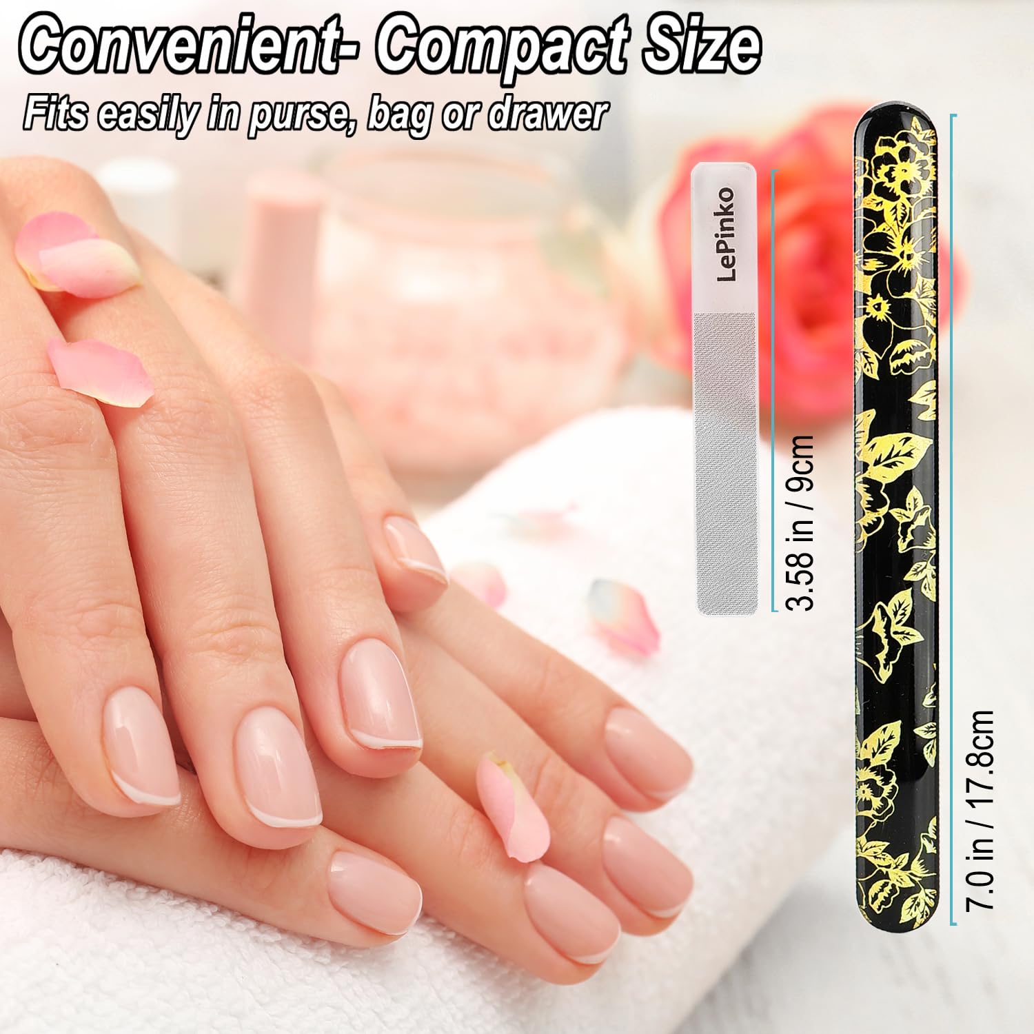 - Powerful and Gentle Manicure Kit - The fine metal sapphire filer will easily shape and file your fingernails and toenails smoothly, the nano nail polisher will smooth down uneven nail surfaces and buff them to a beautiful healthy gloss like polished.