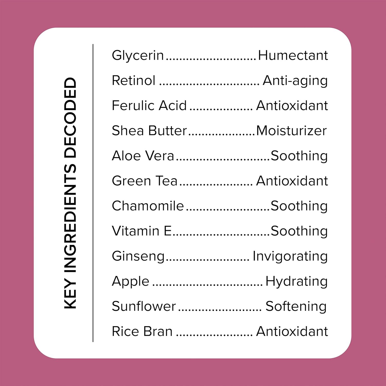 - VITAMIN C – Incorporating a Vitamin C infused body lotion into your daily skincare routine can help to promote a more healthy, radiant, & youthful-looking complexion. Vitamin C helps promote an even skin tone, while also helping stimulate collection production to improve skin elasticity + firmness. Vitamin C also helps to minimize redness or irritation in the skin, helps protect from environmental stressors like UV rays, and helps reduce the appearance of fine lines, sun damage, & wrinkles.