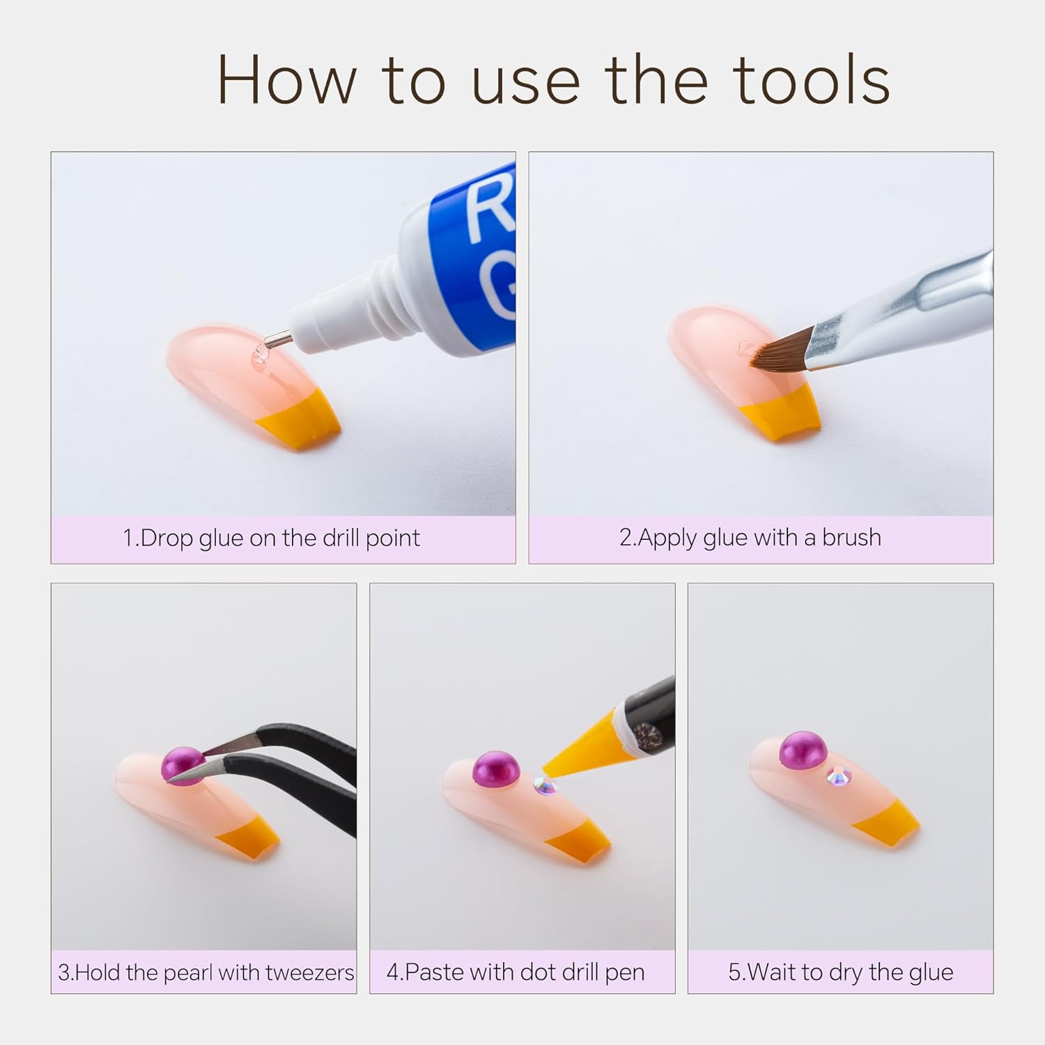 - Useful tools - These pearls and rhinestones have a flat back, which is excellent for easy placement.and you can pick up any large or small pearls and rhinestones with the crayons we bring along. And use the brush to smooth out the Gel, these tools will work very well