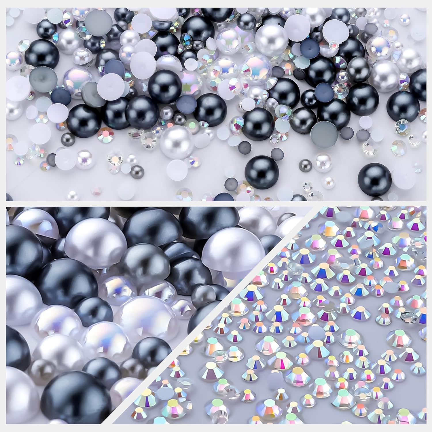 - What You Will Receive: 60g(30g*2)mixed size flat back pearls and rhinestones. 3*Rhinestone Glue. 1* wax pencil for rhinestones. 1*Pencil sharpener(color random). The mix half round pearls and rhinestones can make more beautiful handicrafts for your friends, parents, yourselfs on any festivals.If you need a mixed size pack of pearl rhinestones