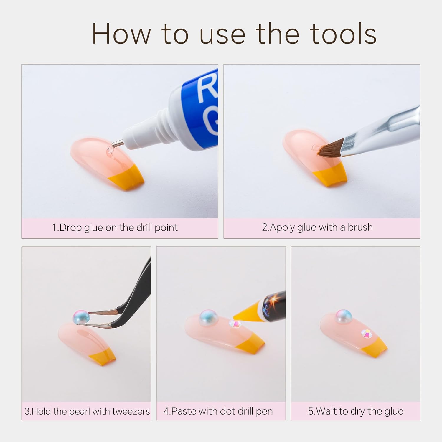 - Useful tools - These pearls and rhinestones have a flat back, which is excellent for easy placement.and you can pick up any large or small pearls and rhinestones with the crayons we bring along. And use the brush to smooth out the Gel, these tools will work very well