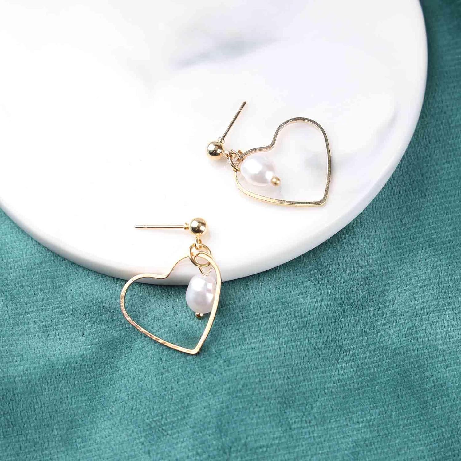 - 【Exquisite and Simple】Statement Heart Earrings perfectly accentuate the beauty of this earring jewelry with cutout hearts and pearl drop earrings.