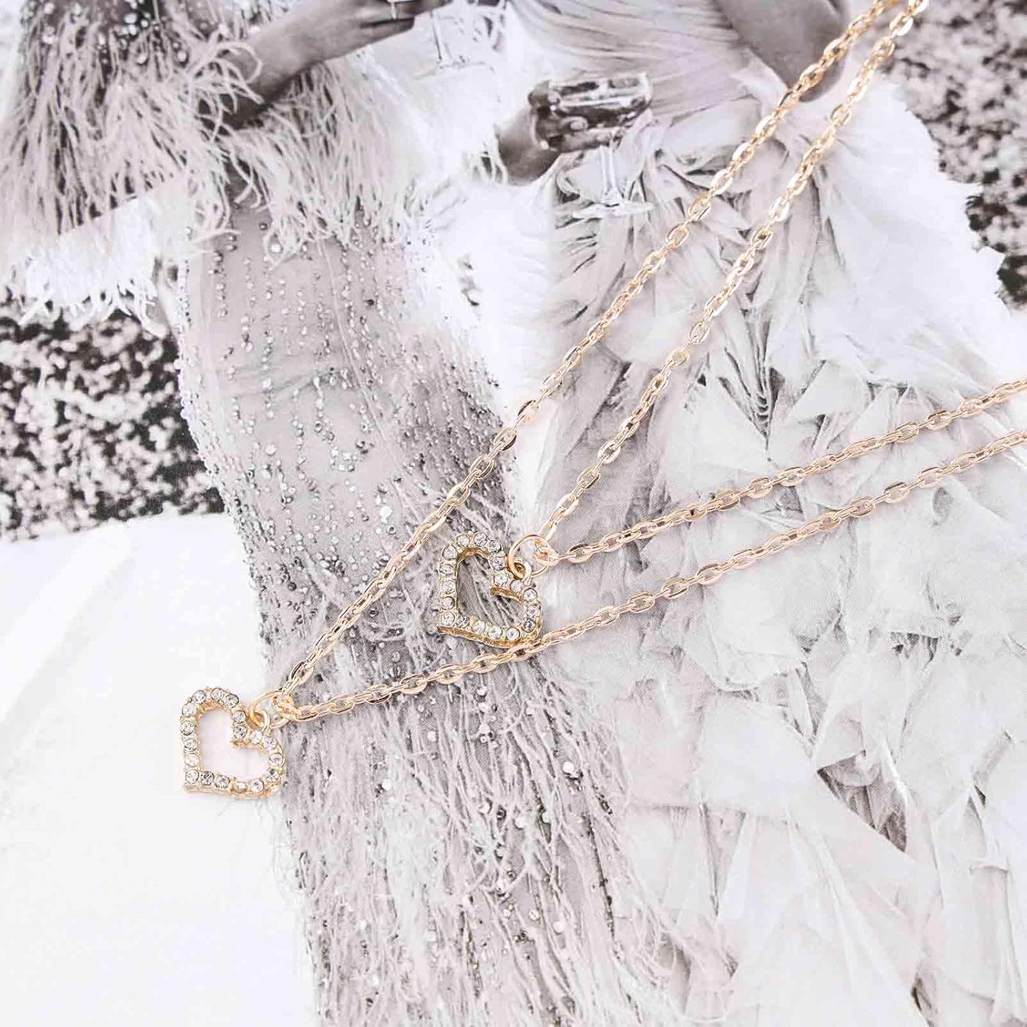 - Layered crystal heart necklace made of high quality alloy and rhinestone,make the surface of the necklace brighter,hypoallergenic,wonβt irritate your skin.