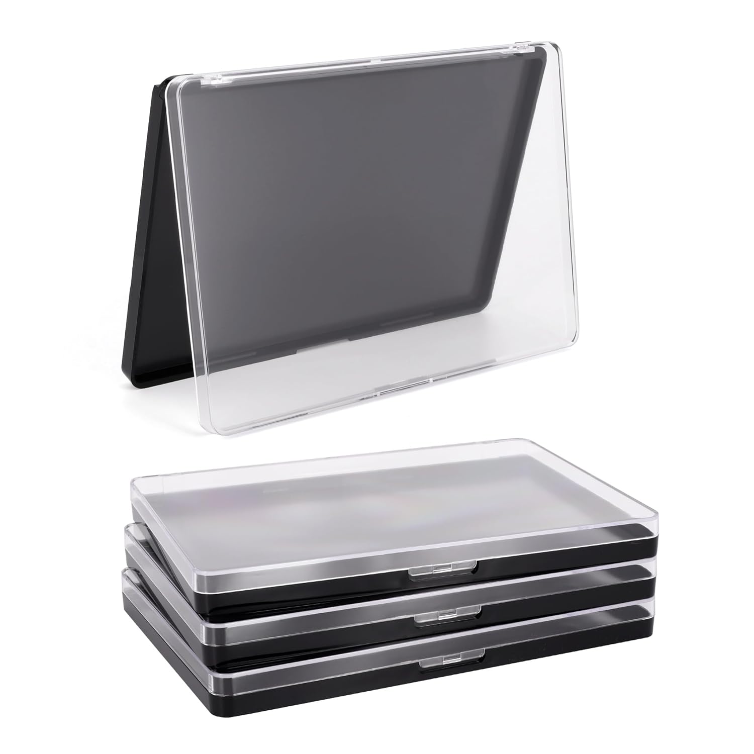 Magnetic Makeup Palette with Clear Top, 3Pack Empty Eyeshadow Pan Dispensing Storage Box with 60Pcs Adhesive Metal Stickers for DIY Cosmetics Lipstick Blush Powder-7.87”X5.51”Palette