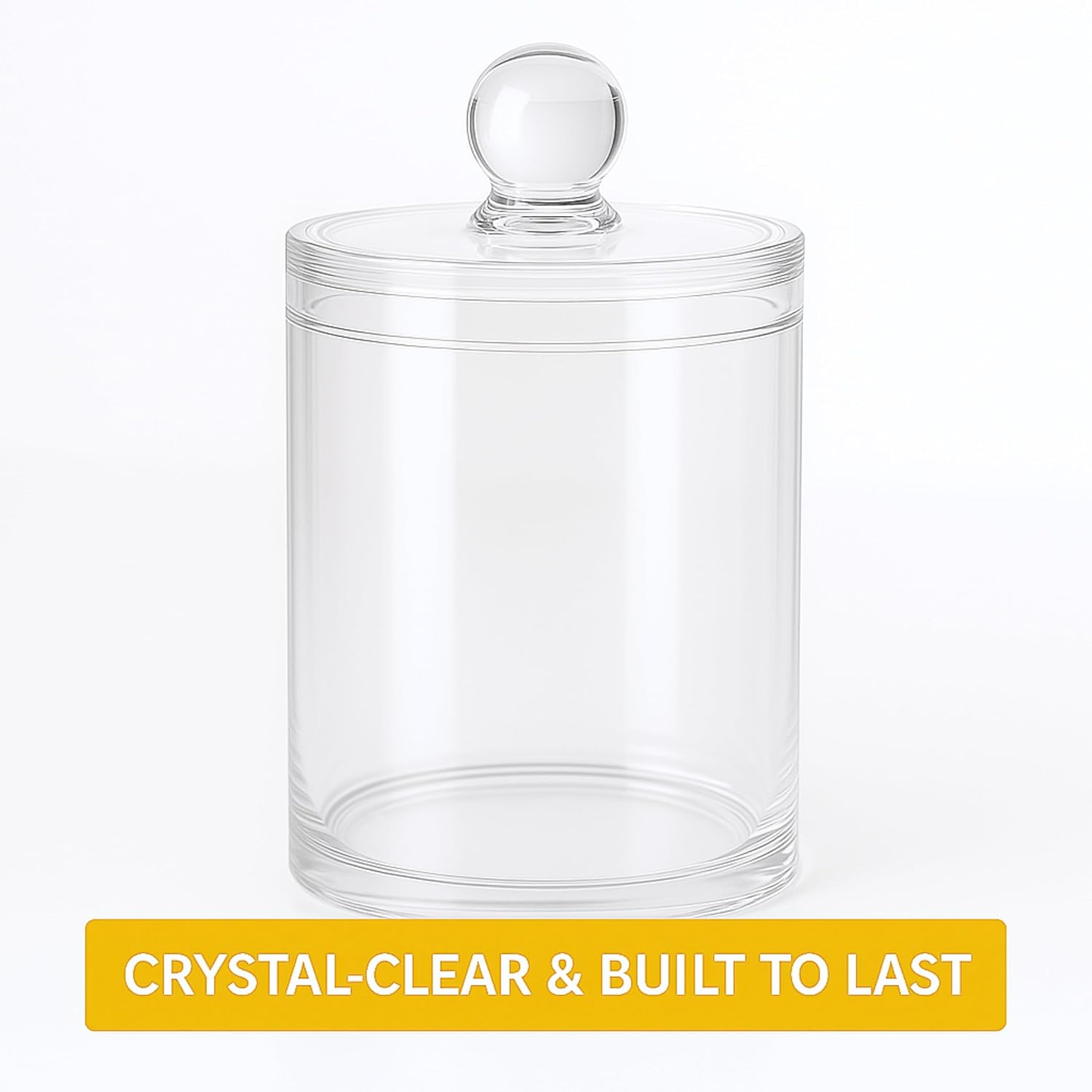 - MORE DROP-RESISTANT THAN GLASS: Acrylic storage containers smooth edges provide a secure grip and it also makes the Apothecary jar with lids more beautiful. qtip cotton ball organizers and storage crystal-clear design bathroom containers with lids enhances visibility and makes it easy to locate items. q tip holder for bathroom are crafted from high-quality, ensuring durability and safety.