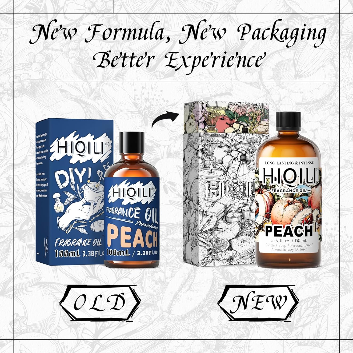 HIQILI Peach Fragrance Oil for Home Diffuser, DIY Candle, Linen & Room Freshener Spray Making, Juicy Fruit Scents - 5.07 Fl Oz